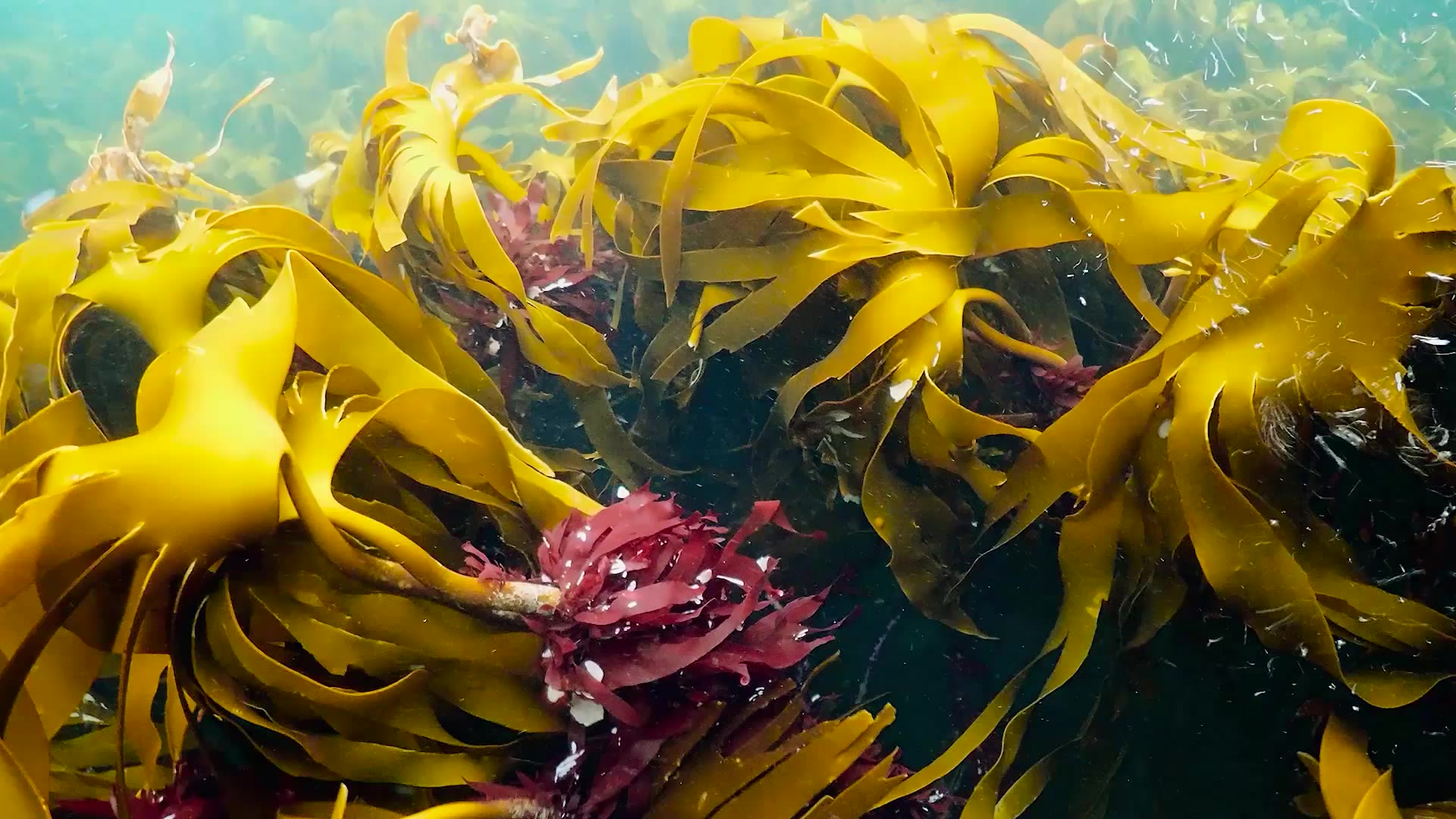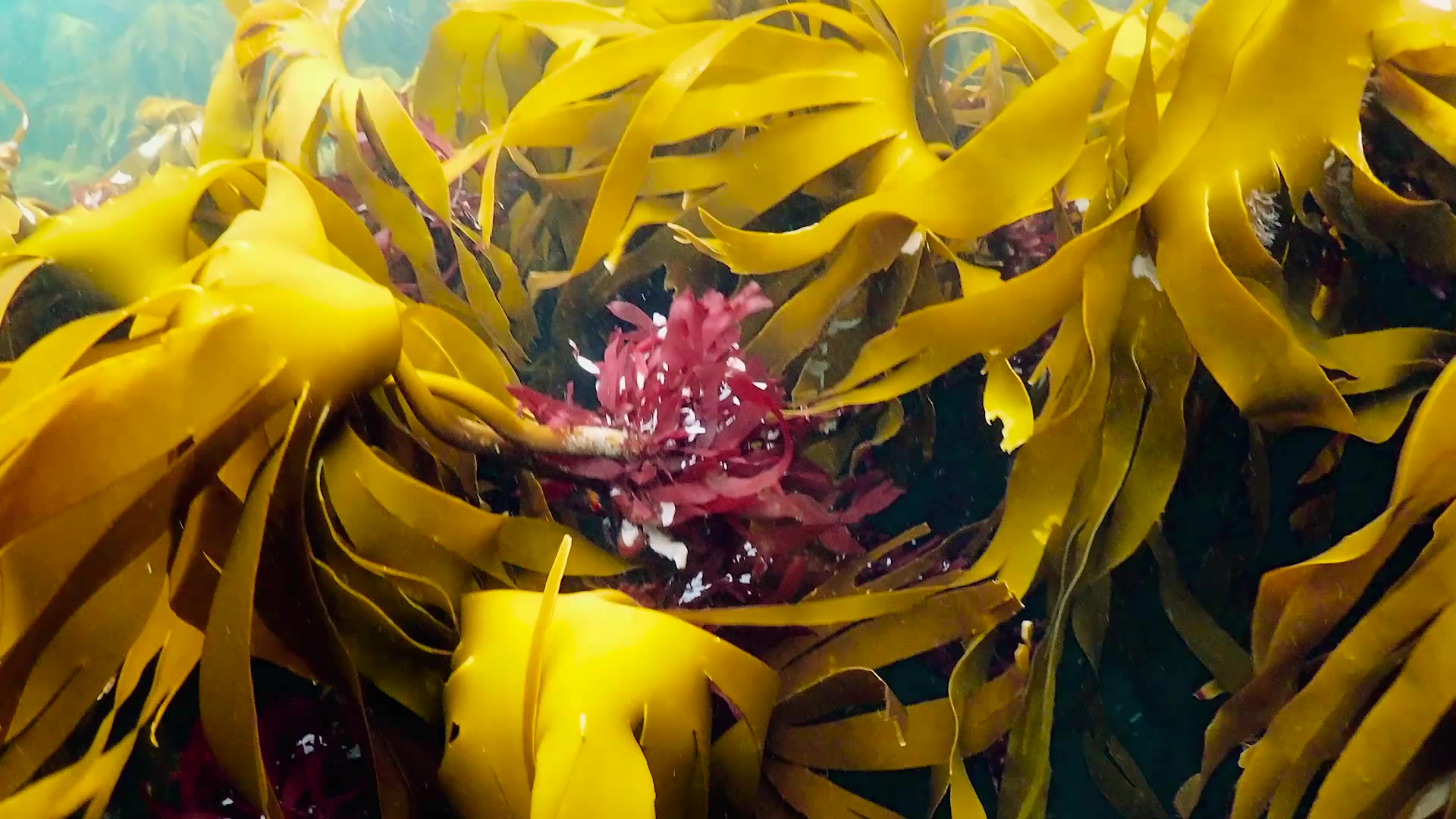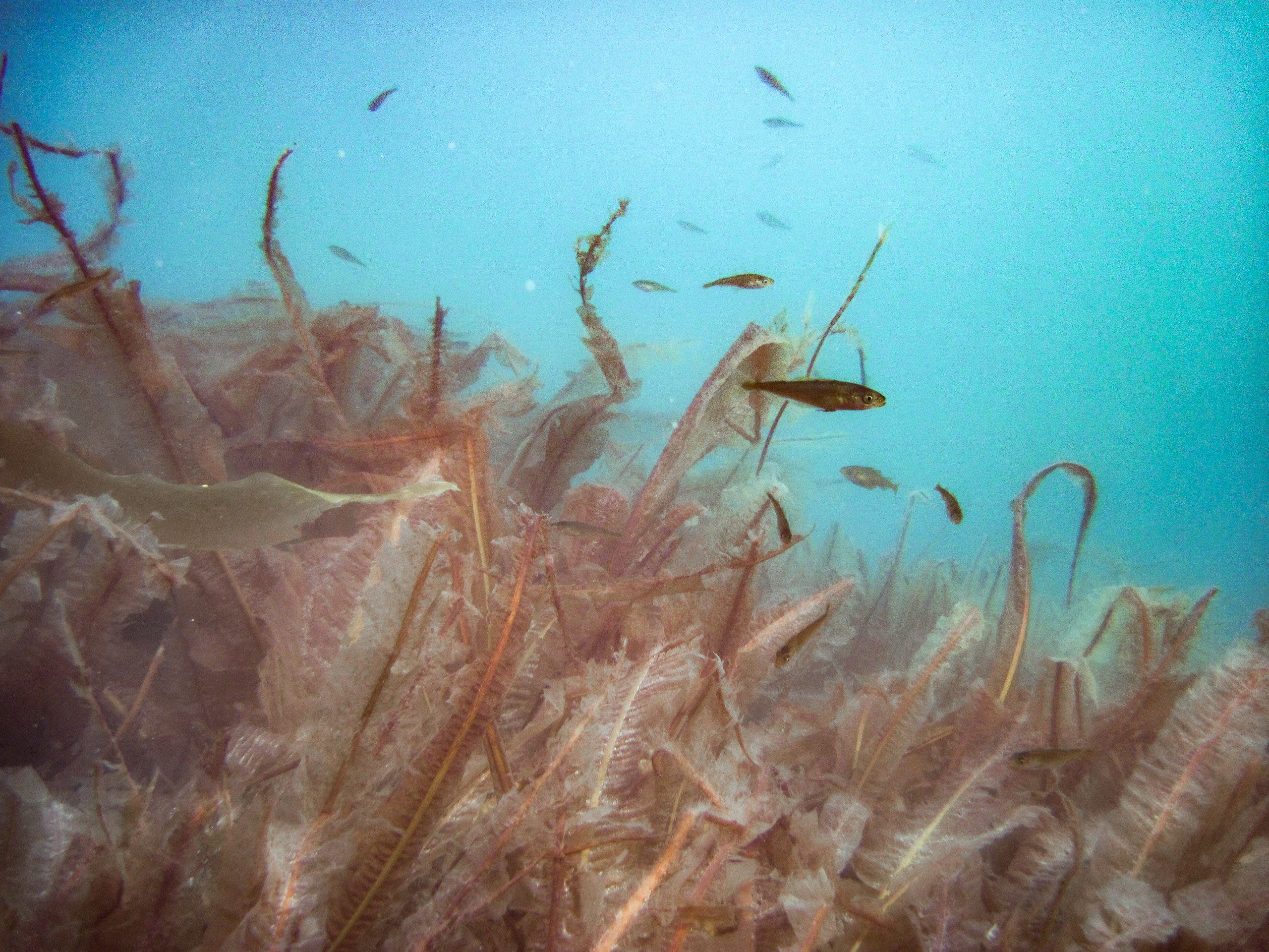 Mest synlig er tareskogene, der store, gullbrune blader svaier i vannet.