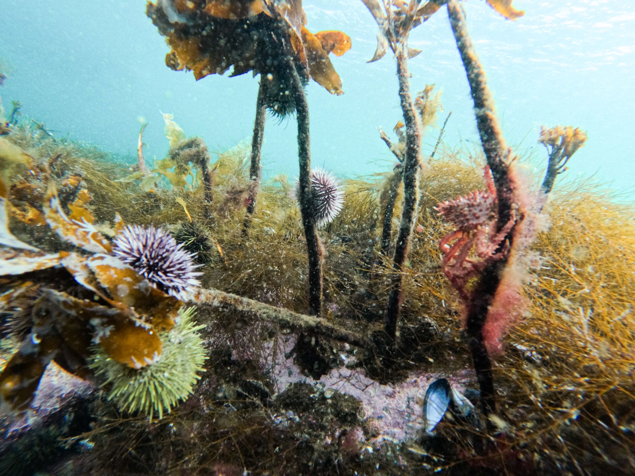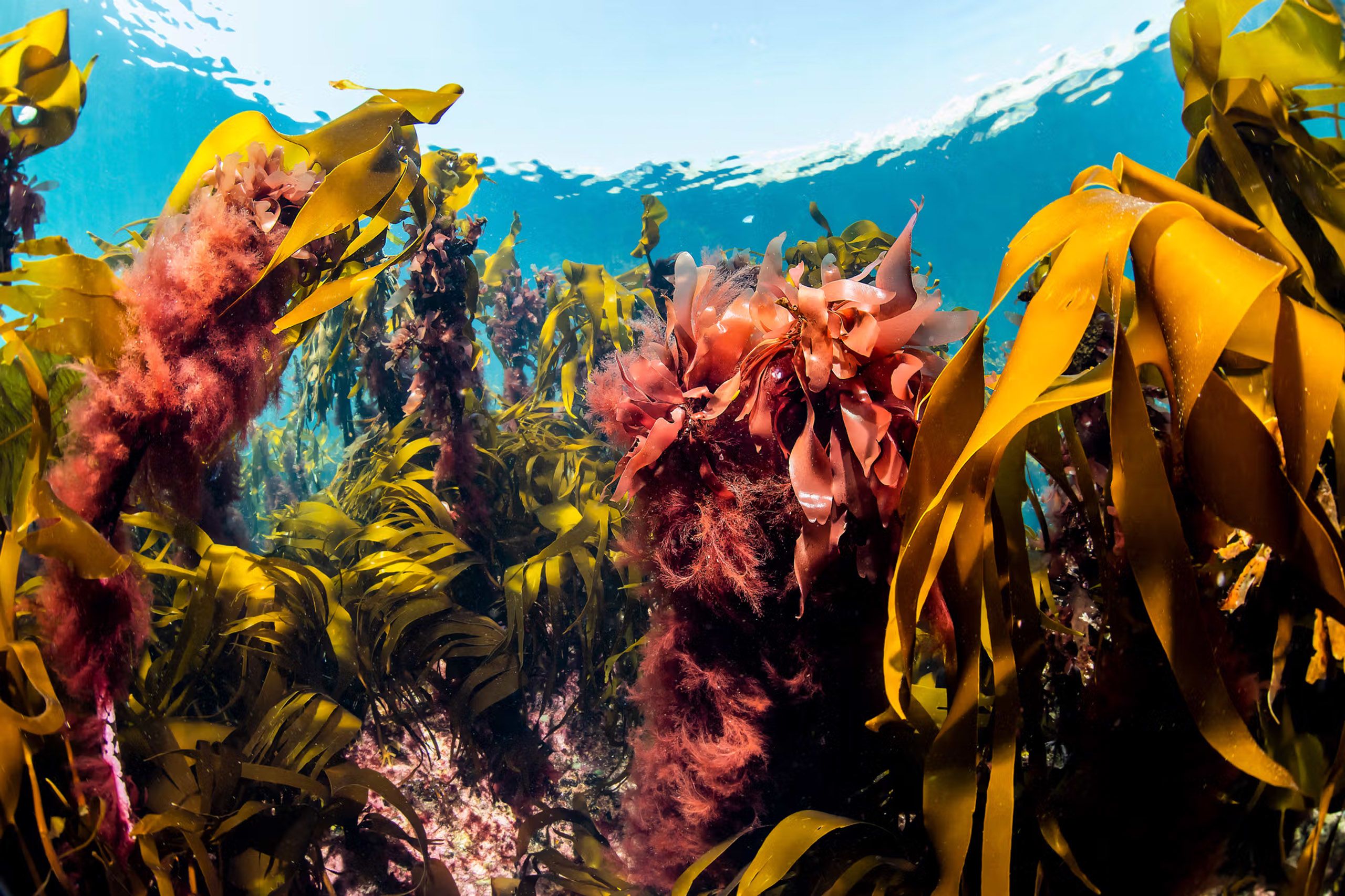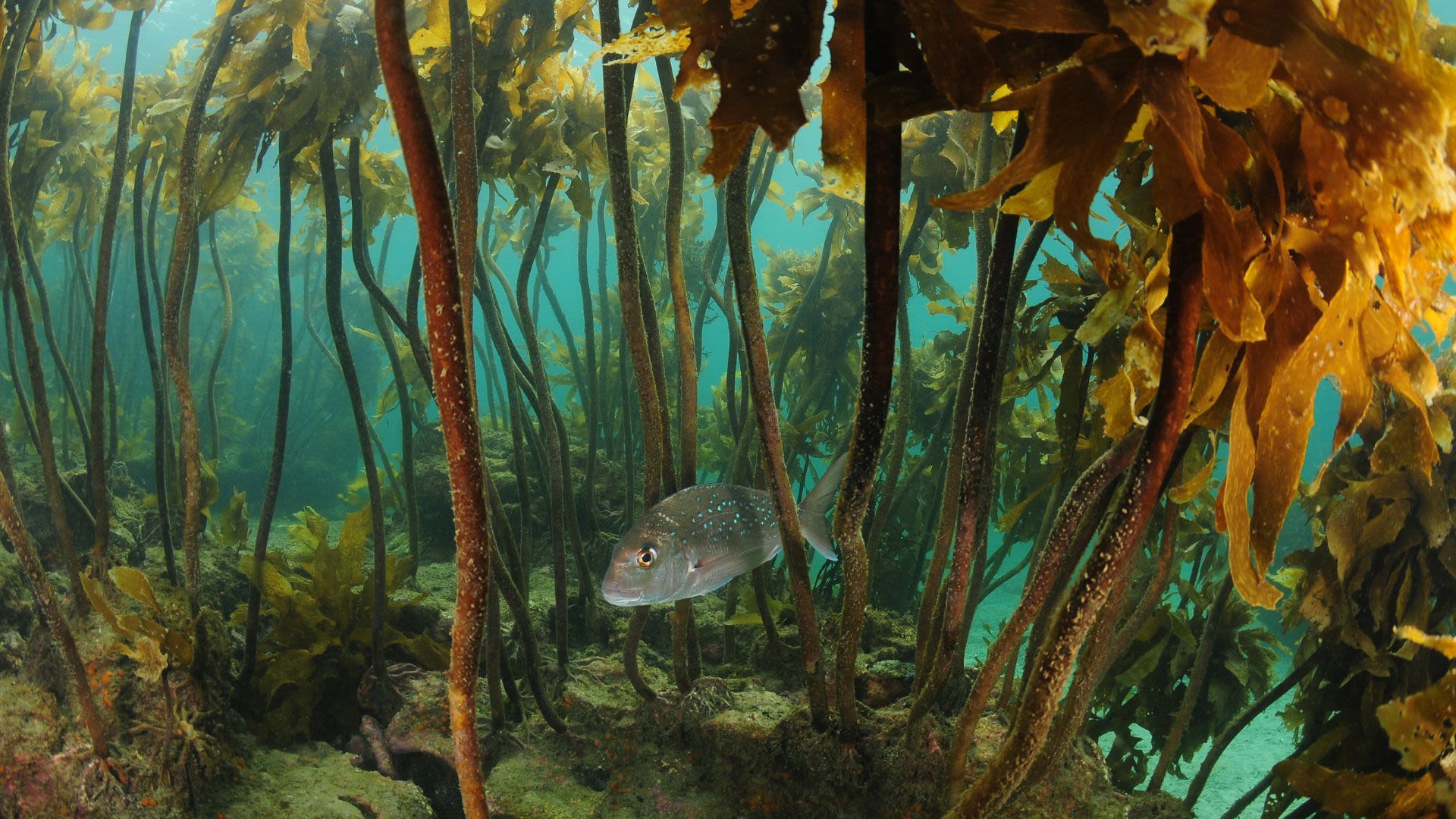 Mest synlig er tareskogene, der store, gullbrune blader svaier i vannet.