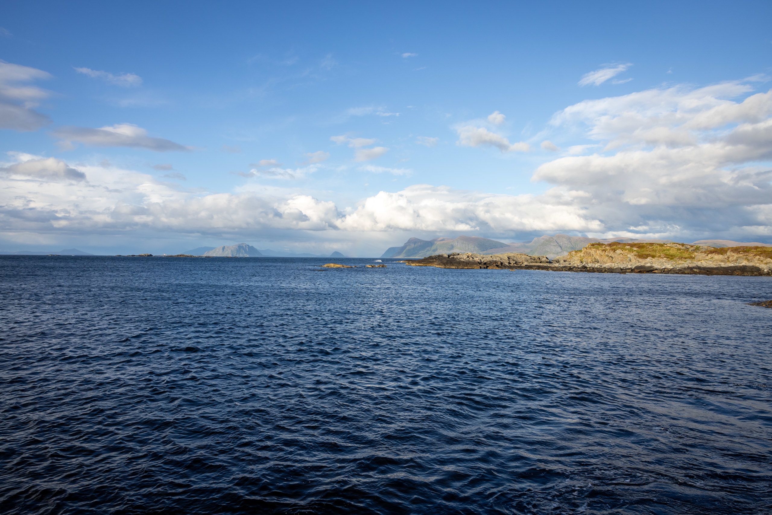 Noen steder vokser tareskogen helt nært land, som her, utenfor Runde på Sunnmøre.