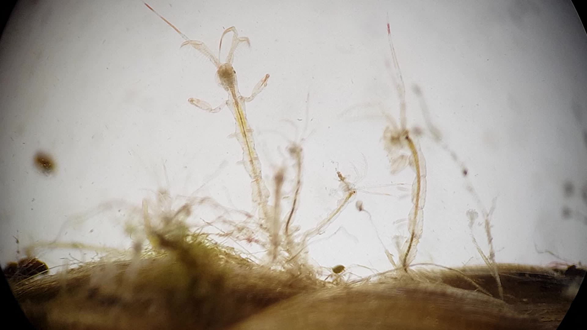 Her lever et yrende samfunn av smådyr, som børstemark, tanglopper og knøttsmå snegler. Dette er snadder for småfiskene.